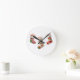 The clock did not take as long to arrive as I thought it might and was extremely well packaged. I didn't do the measurements so I didn't realize it is a little smaller than the average clock but that does not matter (just make sure you check if that's important to you).It is really nifty! It seems very solid and well made not flimsy at all. It has been going well and has kept good time in its few weeks on my wall. Nice product. Gets noticed too! Nicer in real life than the picture but true to the picture