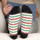 A Christmassy design with red and green stripes on a white background and a colourful Christmas tree on the calf. A garment for the Christmas season or the evening when you visit the in-laws.