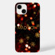 Christmas Sparkling Bokeh Lights Winter Snowflakes Personalised Name iPhone Cases features an abstract red bokeh Christmas lights background with gold glitter snowflakes and personalised with your name in golden modern script typography. Perfect for personalised Christmas gifts and winter holidays. Designed by © Evco Holidays www.zazzle.com/store/evcoholidays