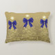 Christmas Sparkling Trees Gold Faux Navy Bow Decorative Cushion