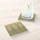 Christmas Sparkling Trees Gold Faux Silver Bow Glass Coaster