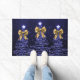 Christmas Sparkling Trees Navy Blue Faux Gold Bow Doormat