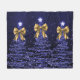 Christmas Sparkling Trees Navy Blue Faux Gold Bow Fleece Blanket