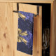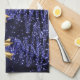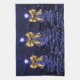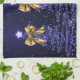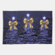 Christmas Sparkling Trees Navy Blue Faux Gold Bow Tea Towel