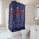 Christmas Sparkling Trees Navy Blue Faux Red Bow Shower Curtain