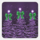 Christmas Sparkling Trees Purple Faux Green Bow Square Sticker