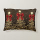 Christmas Sparkling Trees Red Gold Faux Bow Decorative Cushion
