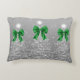 Christmas Sparkling Trees Silver Faux Green Bow Decorative Cushion