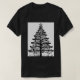 The shirt features a rich black canvas adorned with a stunning, white Christmas tree design. The intricate details of the tree, embellished with snowflakes and ornaments, create a chic and modern look. The monochromatic palette adds sophistication, making it the perfect attire for both casual and festive occasions.