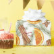 This Christmas citrus and spice wrapping paper is sure to remind everyone of the delightful smells of the holidays. The festive pattern features orange slices, anise, cinnamon sticks, and pine sprigs.