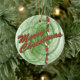 Green fractal swirls, ribbons and stars complete one side of a traditional festive red and green Christmas design on this round ornament. This design has green outlined red "Merry Christmas" text on one side and you can personalise the opposite side. Fill in the template blocks with your words to personalise that side or completely remove the text. Click "Customise it!" to select a font style, colour and size you prefer.