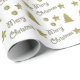 A pattern of gold stars, Christmas trees, Christmas balls and the wishes for a Merry Christmas! Elegant wrapping paper. Designed by Marions Artwork.