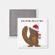 A cute little squirrel in a red and white santa hat and a red holiday bow around his neck. An acorn in his paws. A fun saying ' I'm nuts about you' the saying can be changed as desired.