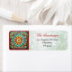 Bright and vibrant stained glass design of multicolored Christmas star mandala in a red frame. With pale green glitter effect background and cute handwriting-style font. Customise to include your own name and address details.