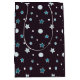 Seamless Christmas pattern, blue stars and snowflakes on dark background.