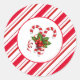 This Christmas sticker is shown with a festive holiday candy cane stripes print.