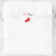 This small round sticker is shown with a cute Christmas holiday stocking filled with treats print.