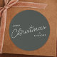 A trendy and stylish holiday round sticker featuring modern and handwritten script typography in white on a deep smoky green-gray background. Perfect for adding a refined touch to Christmas gifts, envelopes, or product packaging, this minimalist design blends simplicity with modern festive charm. Easily personalize the name in Zazzle’s design tool for a unique, custom finish that feels thoughtful and elegant. Ideal for family presents, small business branding, or wedding favors, these stickers pair beautifully with kraft paper, metallic accents, or neutral tones. The understated smoky green-gray hue offers a timeless alternative to traditional Christmas colors. A simple, minimalist, and contemporary holiday sticker design that stands out for its effortless style and modern sophistication this festive season.
