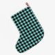 This Christmas stocking is shown in a black and aqua color buffalo plaid print.
