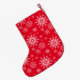 This Christmas stocking is shown in a festive winter snowflakes print.