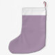 This holiday Christmas stocking is shown in a Merry Christmas snowflake print.