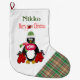 Christmas Stocking, Plaid Boxing Penguin Pow Large Christmas Stocking