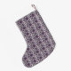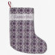 Quilt block in purple and white "spool" pattern. Eight spools rotate around a centre of dark purple. A purple flower print is the "thread" on the spool, as well as the frame for each block. One side shows white stripe for area to personalise your name.