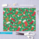 This holiday themed tissue paper is decorated with charming Christmas stockings in red and green, each decorated with its own unique pattern of polka dots, stripes, diamonds, stars, and more. Background is a pattern of delicate snowflakes on green. Perfect for wrapping a special gift! Designed by artist © Susan Coffey.