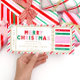 This fake Christmas concert gift voucher design features a festive red, pink and green stripe design. The "Merry Christmas" heading is an image that cannot be edited. All of the other text is fully editable. For more advanced customisation of this design, simply select the "Customise It" button above.
