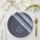 Part of a coordinating design set for Christmas, this paper plate features diagonal stripes with an outdoorsy theme in shades of sky blue, navy and white. Optional 'Happy Holidays' text and a template have been provided to add your name and/or other text. Search ID861 thru ID864 to see additional colour options and other products in this modern, Christmas design set.