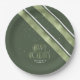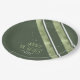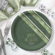 Part of a coordinating design set for Christmas, this paper plate features diagonal stripes with an outdoorsy theme in shades of moss green and white. Optional 'Happy Holidays' text and a template have been provided to add your name and/or other text. Search ID861 thru ID864 to see additional color options and other products in this modern, Christmas design set.