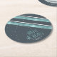 Christmas Stripe Pattern Teal/White ID862 Round Paper Coaster