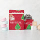 Happy Holidays sugar cookie collection on white snowflakes and red background.