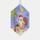 Christmas Summer Santa Beach Holidays Personalised Ornament features a cute summer Christmas beach scene with tropical Santa with festive palm tree and sandy snowman on the beach. Personalised by editing the text in the text box provided. Perfect for those celebrating a tropical or summer Christmas. Designed by ©Evco Holidays www.zazzle.com/store/evcoholidays