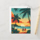 A vibrant tropical sunset with palm trees and surfers. Perfect for framing, collecting, or sending warm island vibes to friends.