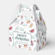 This is a modern and cute family friendly favour box with Merry Christmas in a bold and fun typography. The pattern features cute watercolor graphics of gingerbread houses, cookies, candy canes, snowmen, holly, penguins and sleighs, along with the script text falala.