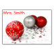 Christmas table card with red and silver decorations and customisable text.