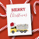 A cute illustration of a yellow tanker truck wearing a Santa hat and decorated in Christmas lights with words "Merry Christmas". Perfect for transportation trucks lovers of all ages. An ideal Christmas postcard for tanker truck enthusiasts big or small, girls or boys.