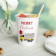 A cute illustration of a yellow tanker truck wearing a Santa hat and decorated in Christmas lights with words "Merry Christmas". Perfect for transportation trucks lovers of all ages. An ideal Christmas design for tanker truck enthusiasts big or small, girls or boys.