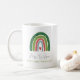 Cute personalised teachers Christmas mug with festive rainbow, teachers name and text "always make the nice list". Make a wonderful gift to your favourite teachers or someone special.