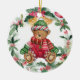 This lovely two-sided design consists of a cute watercolor sitting teddy bear wearing a green, red and white Christmas beanie, a red scarf and green gloves, framed by a watercolor Christmas wreath.