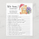 "There's a Beary Sweet baby on the way". Celebrate with this teddy bear themed baby shower party! Watercolor cute teddy bear with christmas gift, in santa hat. On the reverse side of the card are holiday christmas pattern (candy cane, christmas tree ball toy, christmas socks).