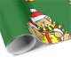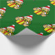 A drawing of a cute teddy bear wearing a Santa Claus hat holding a Christmas present.