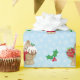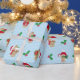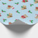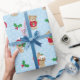 Absolutely adorable little teddy bears dressed in Christmas sweaters and hats, reindeer antlers and Santa hats. Background is pale blue with white snowflakes and there are little sprigs of holly all around. Your little ones will love this adorable Christmas wrapping paper!