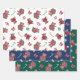 Hand-Painted christmas design with teddy bears, baubles, candy canes, striped bows, and small stars in traditional festive colours. Three sheets, blue, green, white.