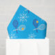 🎄Christmas 🎾tennis blue and white Tissue Paper. White Christmassy pattern with snowflakes and tennis rackets on baby blue background.