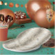This Christmas paper plate design features a beautiful text pattern dotted with snowflakes all in shades of shimmering gold. Some of the text includes 'Merry, Bright, Noel, Season's Greetings, Peace, Joy and Happy Holidays.' Search ID257 to see other colour options and additional products with this design.