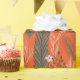 This Christmas theme wrapping paper pattern features Christmas greenery with cute white flowers with a custom orange-red background.