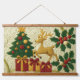 Christmas Theme Tree Reindeer Gifts Quilted Look Hanging Tapestry