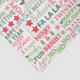 The design features colourful happy holidays typography in a seamless pattern with a custom white background.
